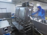 Samen met UNIKON, specialist in industriële wasinstallaties, werd een geheel nieuw model ontworpen. “We hebben beproefde filtertechnieken van UNIKON gecombineerd met onze kennis van machinebouw”, vertelt Corwin. “Het resultaat is een zelfreinigende filter van roestvast staal, volledig demontabel en eenvoudig te reinigen, zonder extra spoelwater.” Ook de technische dienst van Het Urker Zalmhuys speelde een rol. “Kees van onze TD heeft het prototype wel drie keer verbouwd”, zegt Maarten. “Zo hebben we het filter echt samen ontwikkeld. Inmiddels draait het ruim een jaar probleemloos, en zijn er al meerdere verkocht aan andere partijen.”
